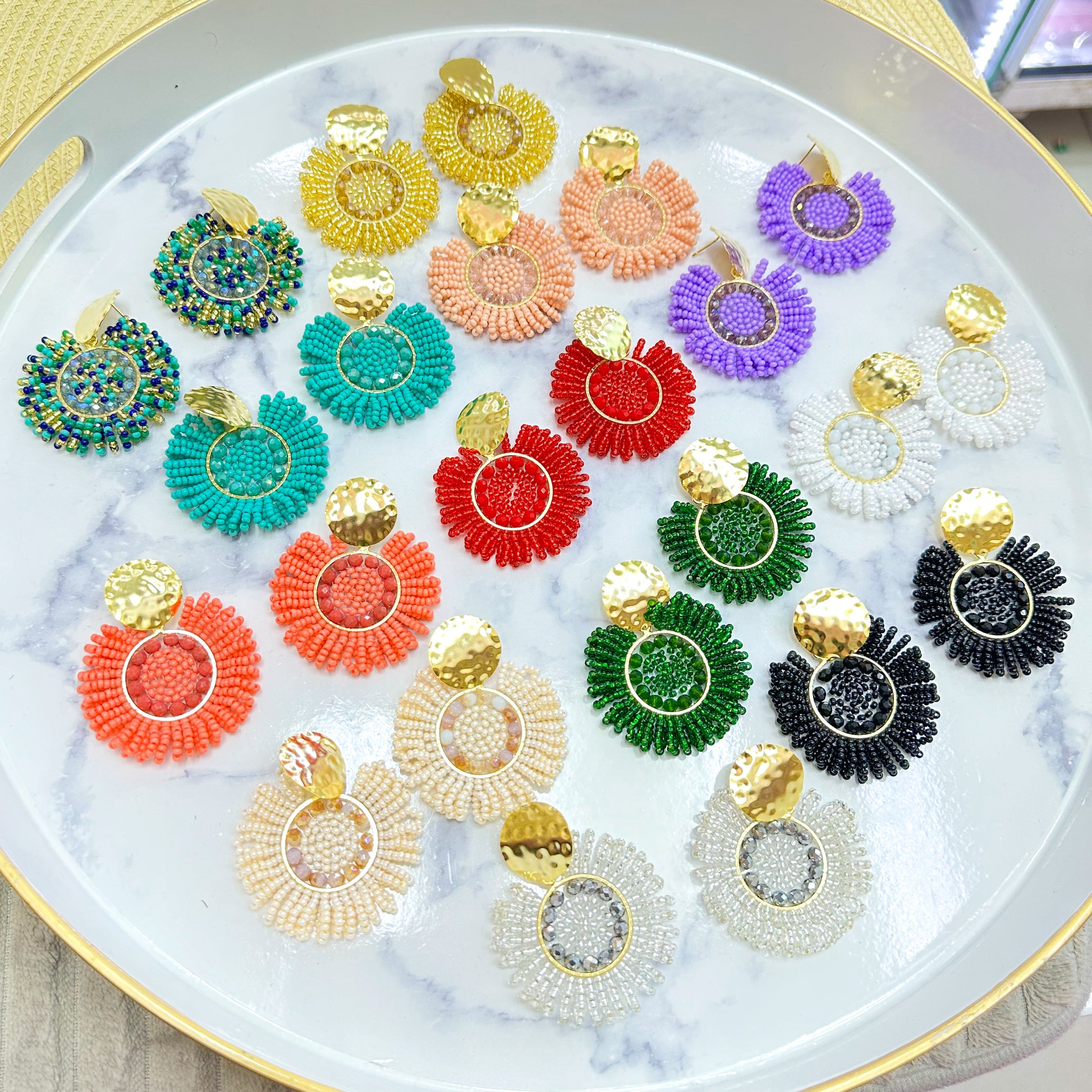• Las piezas tejidas están hechas con piedras llamadas mostacillas, múranos y Miyuki.
